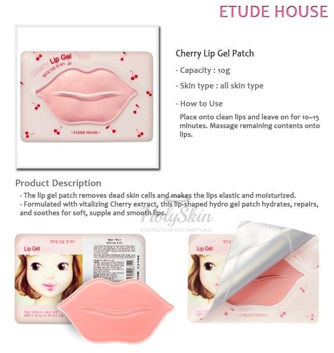 Cherry Lip Gel Patch станет хорошей альтернативой профессиональному уходу за кожей губ в салоне красоты. После применения патча ваша улыбка будет привлекать внимание всех окружающих. Средство действует комплексно: разравнивает мелкие складочки, возвращает коже гладкость, делает ее румяной, наполняет влагой и питательными веществами, стимулирует процесс восстановления.