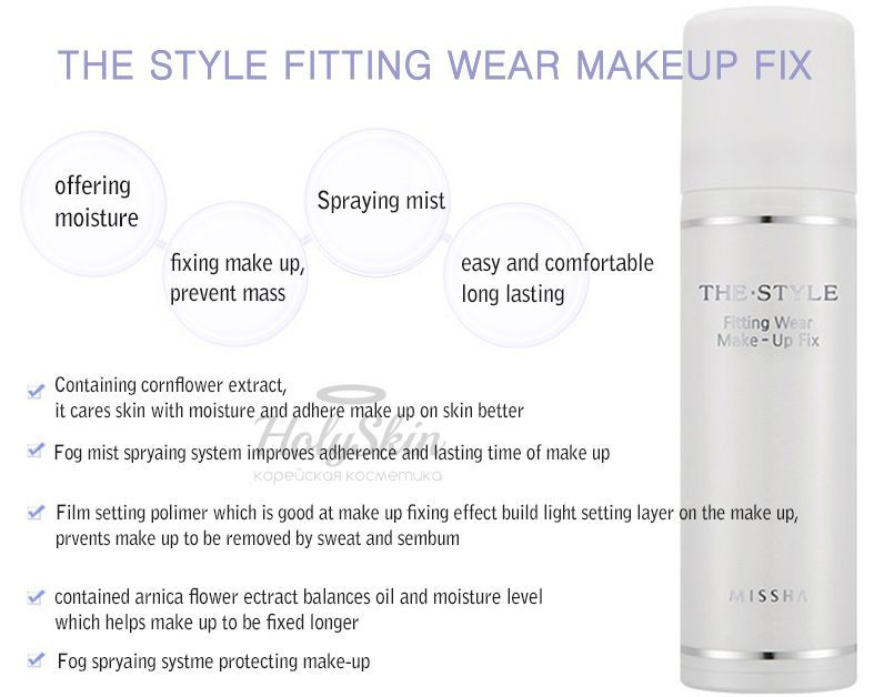 В составе The Style Fitting Wear Makeup Fix настой василька, аденозин, ниацинамид, экстракты бузины и других растений.